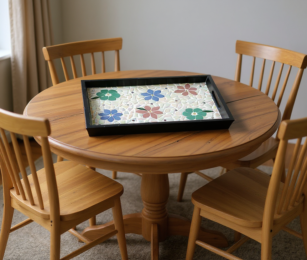 Add a touch of beauty to your home with our Trail of Flowers serving tray. This stunning tray features a combination of yellow and orange flowers on a popping black background, creating an eye-catching and vibrant look. Not only is this tray visually stunning, but it's also practical, making it a great way to serve snacks, drinks, and other goodies to guests. Impress your friends and family with this unique and beautiful addition to your homeware collection.